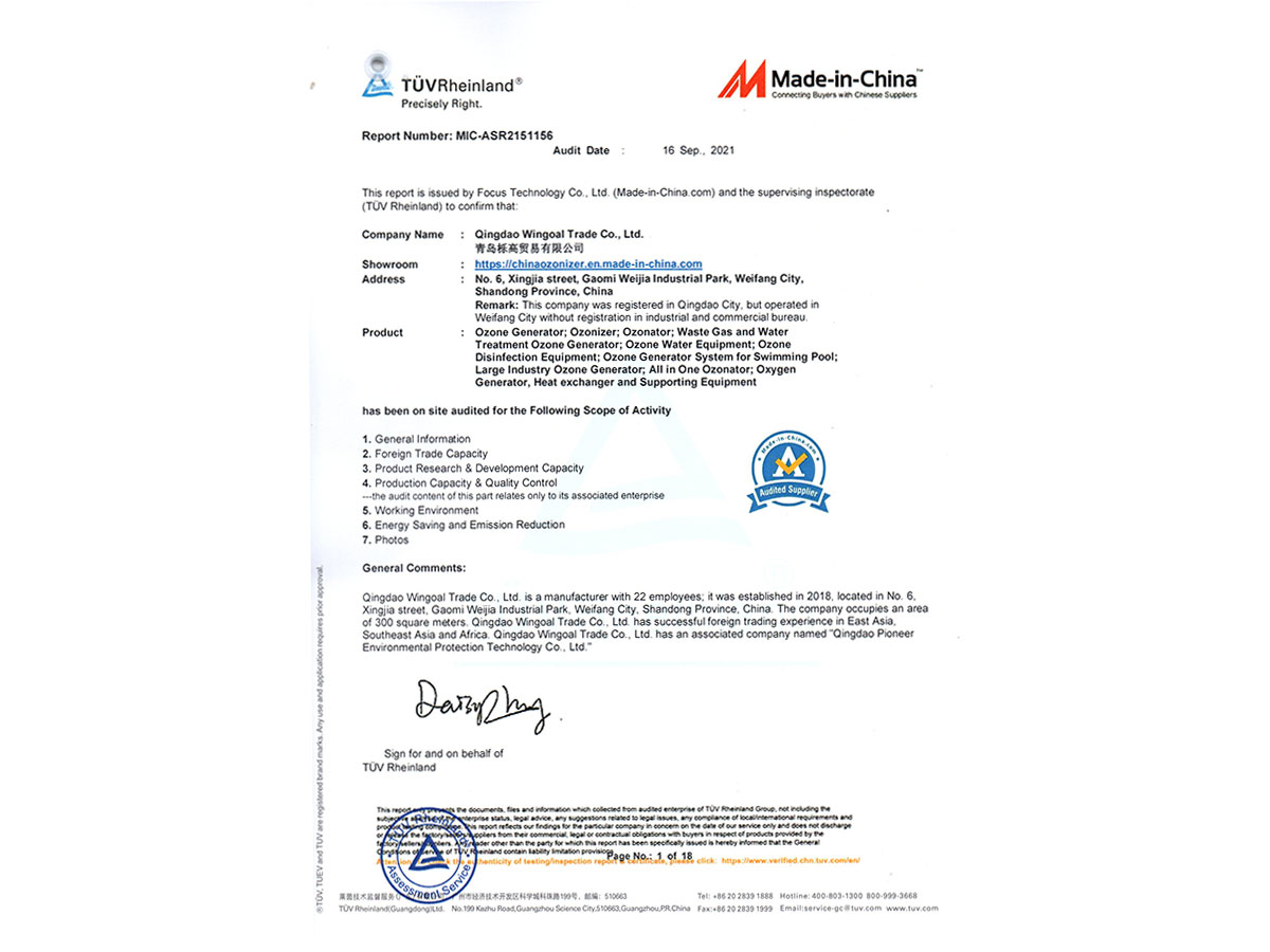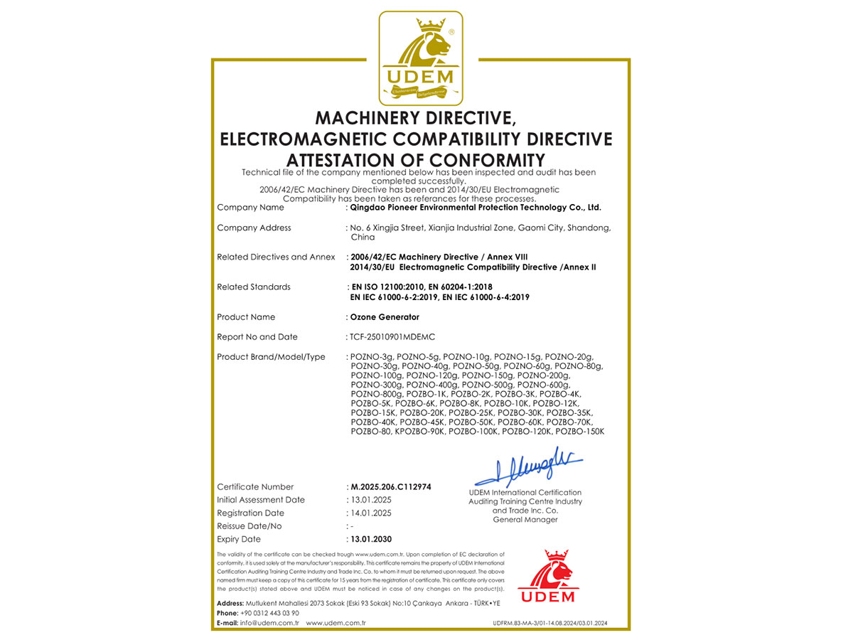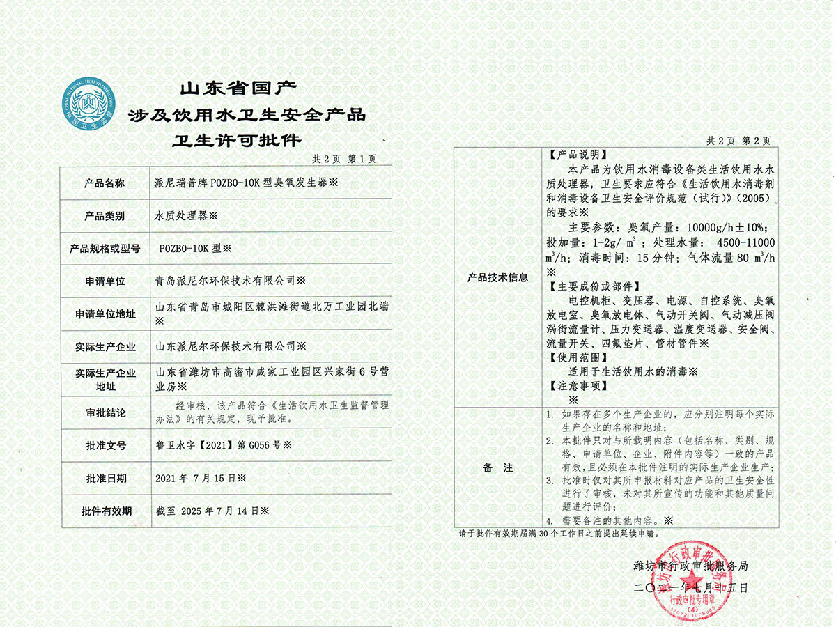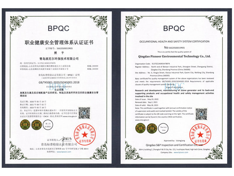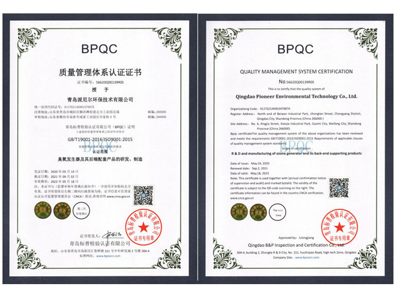 派尼爾已通過了國家級高新技術(shù)企業(yè),ISO9000質(zhì)量體系認證、ISO14000環(huán)境體系認證、OHSAS18000職業(yè)健康管理體系認證、知識產(chǎn)權(quán)管理體系認證、臭氧產(chǎn)品“專精特新”證書等。公司擁有含發(fā)明專利,新型專利,軟件著作權(quán)等二十幾項國家級知識產(chǎn)權(quán)。